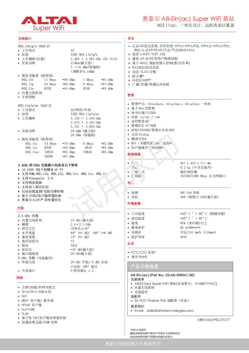 • 型號:A8-Ein (ac)(Part No.: SD.A8-EHNAC-00,設(shè)備型號:WA8011NAC)