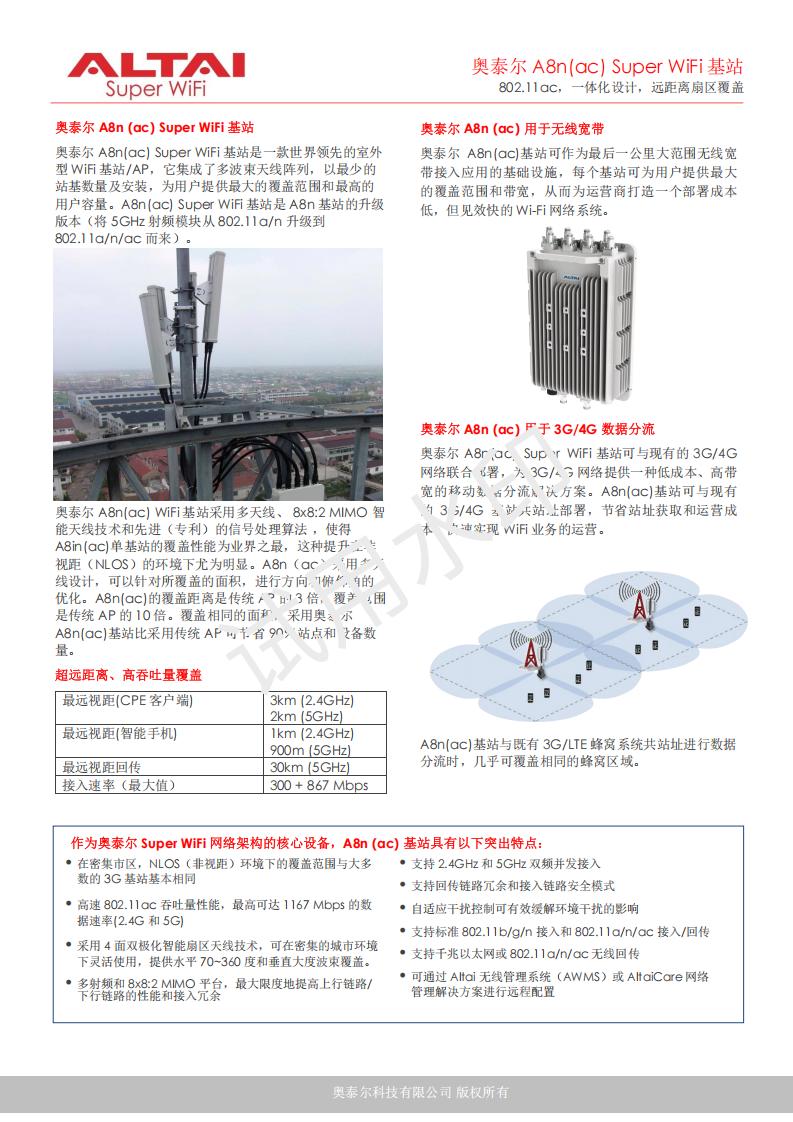 • 奧泰爾 A8n (ac) 基站 | 30km 超遠(yuǎn)回傳 + 1167Mbps 高