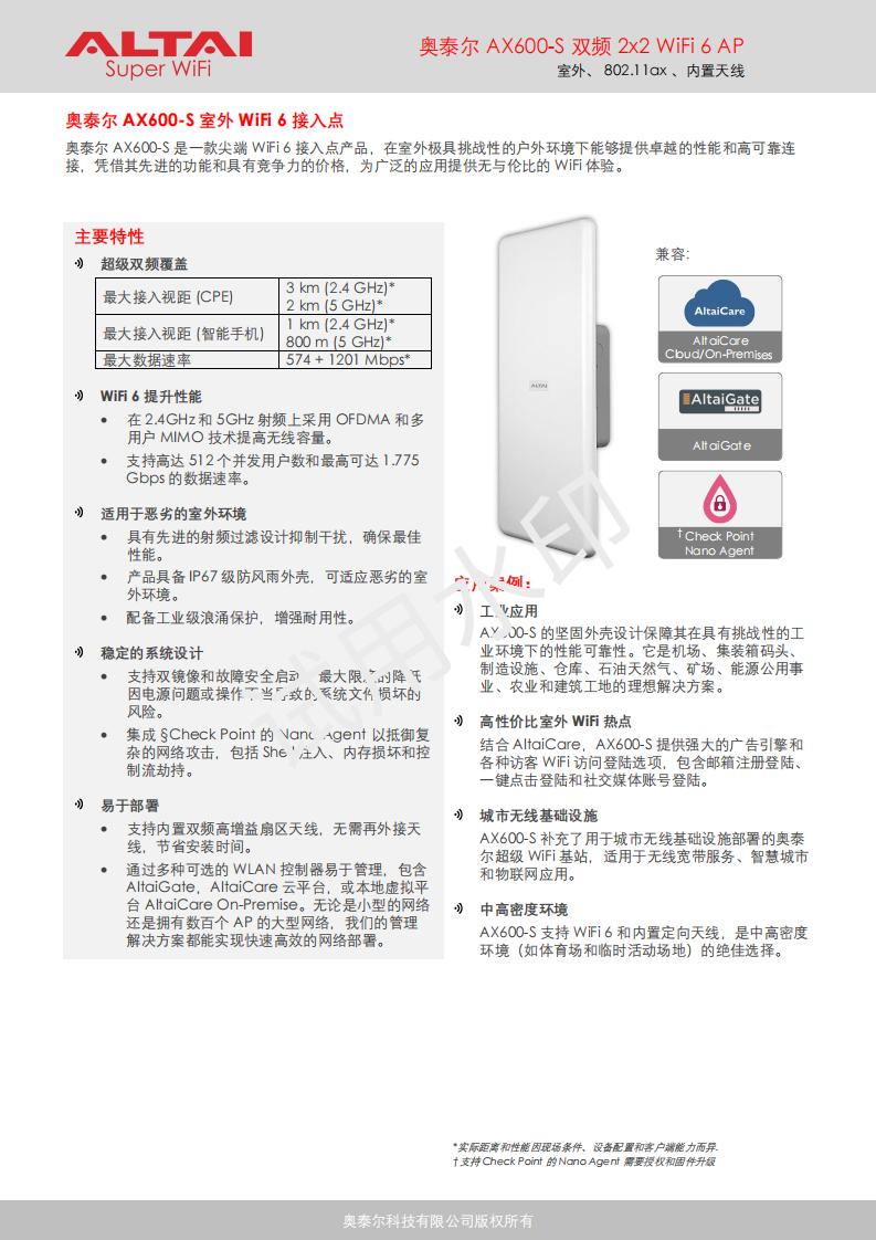 • 城市熱點補盲:AP 模式覆蓋街道、公園,結合 AltaiCare 廣告引擎,提供訪客 WiFi 與精準營銷。