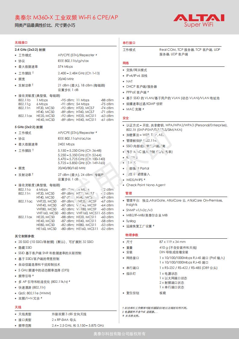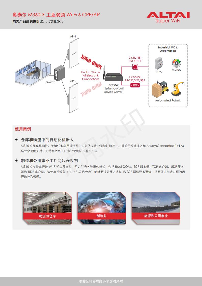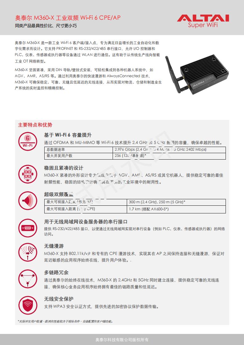 奧泰爾 M360-X 工業雙頻 Wi-Fi 6 CPE/AP—— 工業自動化無線連接專家