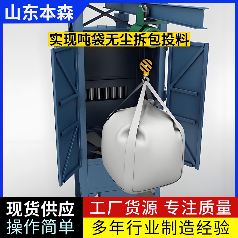 設(shè)備可自動完成噸袋的吊裝、拆包、卸料和廢袋轉(zhuǎn)移等全過程,無需人工干預,顯著提高生產(chǎn)效率,降低勞動強度。