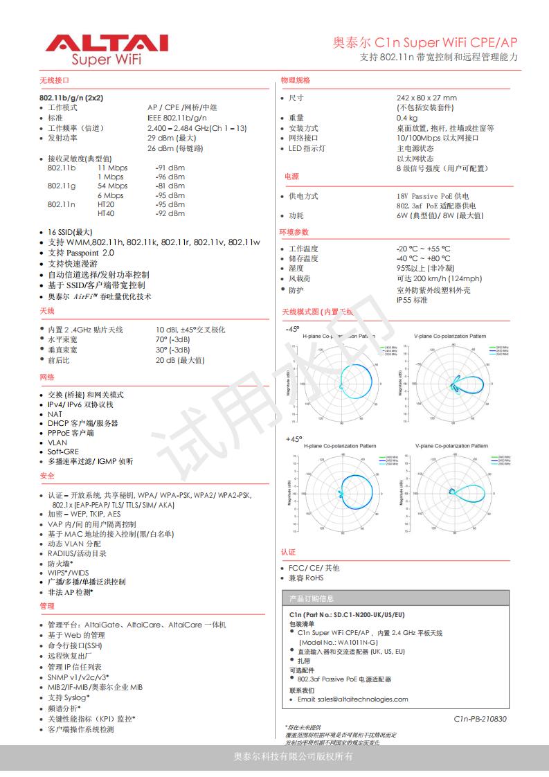 • 奧泰爾 C1an Super WiFi CPE/AP | 5GHz 運營商級無線