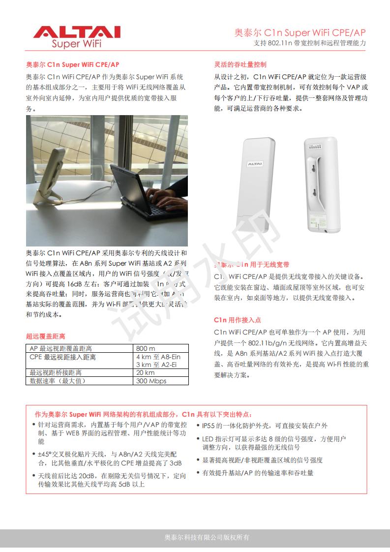 奧泰爾 C1n 三模合一無線 CPE/AP|運營商級 AP / 網(wǎng)橋 / 中繼設(shè)備 超遠覆蓋高效組網(wǎng)