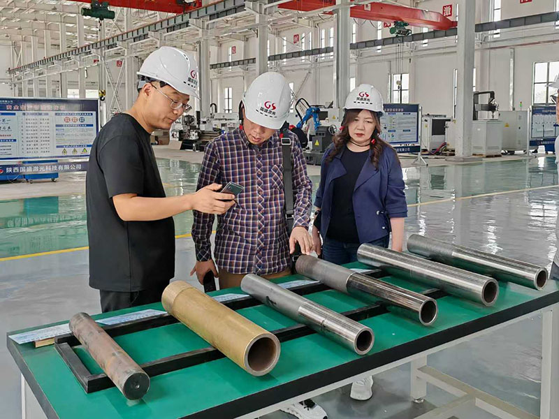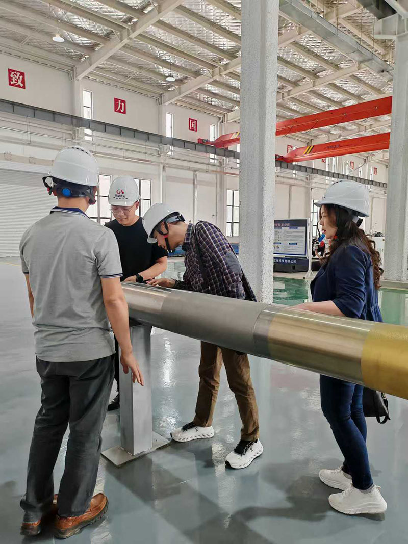 隨后,進入國盛激光生產車間,參觀了我們激光熔覆在各領域成功應用案例,鋼廠夾送輥激光熔覆樣品展示,高鐵鋼軌熔覆加工樣件展,火車輪大齒熔覆效果展示,以及各種粉末在鋼棍上的熔覆效果及車削、磨削前后對比,實質性了解了激光熔覆在修復及維修上的實例應用,呂總指出,激光熔覆修復技術是一種變廢為寶將原本應該報廢掉的樣品進行加工修復,恢復并提升產品使用壽命。