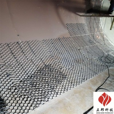 1.焊接;施工中要錨固焊接底部骨架龜甲網,龜甲網的焊接嚴格要求焊接點橫向間距為20mm,縱向間距為10mm,這樣才能使龜甲網和底部鋼板能很好的焊接在一起,從而不會出現由于震動或者風速過大而導致龜甲網松動或者脫落。