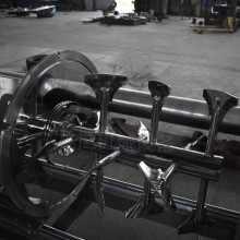 3、臥式螺帶混合機(jī)正反旅轉(zhuǎn)螺條安裝于同一水平軸上,形成一個低動力效率高的混合環(huán)境,螺帶狀葉片一般做成雙層或三層,外層螺旅將物料從兩側(cè)匯集,內(nèi)層螺旅將物料向兩側(cè)輸送,可使物料在流動中形成更多的渦流。加快了混合速