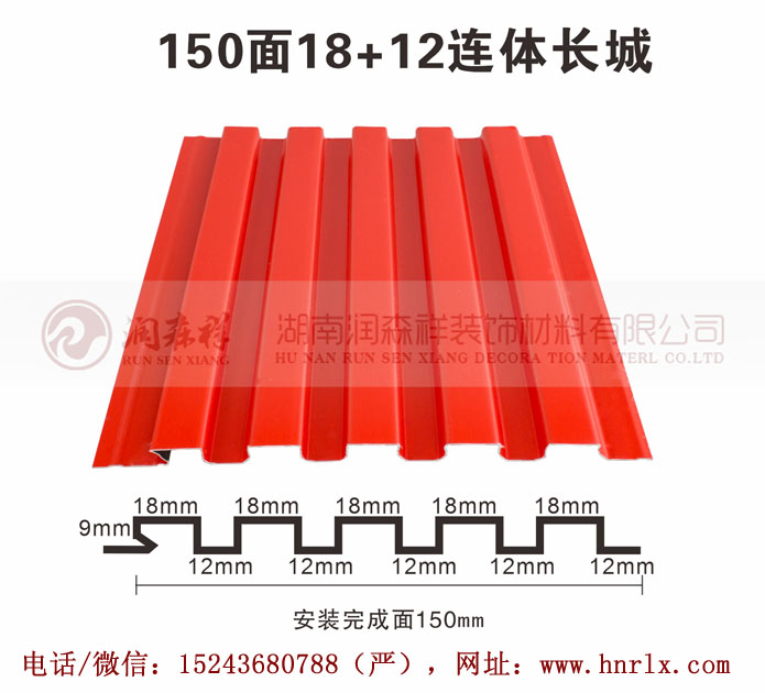 長(zhǎng)城板波浪板門頭裝飾材料墻面裝飾。一般用于連鎖店鋪門頭設(shè)計(jì)裝修、外墻裝飾、大堂門面、大型建筑裝飾、商業(yè)空間設(shè)計(jì)、酒店、商場(chǎng)等場(chǎng)所,能夠創(chuàng)造出獨(dú)特的視覺(jué)效果,提高整個(gè)店鋪的檔次和形象。 波浪板款式多樣,有內(nèi)凹、半圓、凹槽等,支持客戶定制,寬度固定,長(zhǎng)度任意定制最長(zhǎng)做到6米,可隨意選擇顏色。