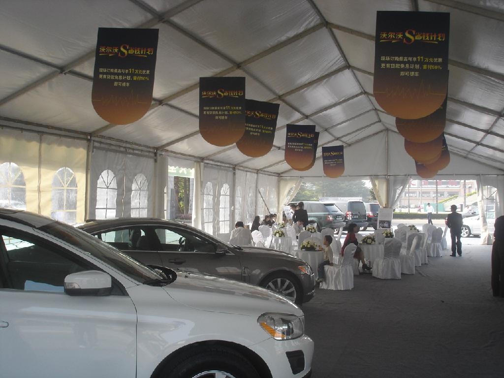 篷房主體框架為高強(qiáng)度特制鋁合金結(jié)構(gòu),重量輕,永不生銹;連接部位為采用國際焊接技術(shù)鋼結(jié)構(gòu),可調(diào)節(jié)式基座可彌補(bǔ)場地的不平,篷房采用雙層PVC合成纖維篷布,該篷布具有不拉伸,防紫外線的良好性能,不透光,防雨 、防火級別達(dá)到行業(yè)標(biāo)準(zhǔn),采用高頻焊接技術(shù),篷房抗風(fēng)能力達(dá)到8 0-1 0 0公里/小時(shí)。單位組合式結(jié)構(gòu),可根據(jù)場地的大小自由增加,對搭建場地?zé)o特殊要求,一般平地如草地、大理石地、瀝青地面、水泥地等均可 。具有體積小、高強(qiáng)度、長壽命、穩(wěn)定性,儲存方便,拆裝靈活、快捷易運(yùn)輸?shù)忍攸c(diǎn),安全性能可靠,符合歐洲質(zhì)量和安全標(biāo)準(zhǔn)。現(xiàn)有篷房主要跨度有345681 01 51 82 12 5304050 米規(guī)格,可根據(jù)場地的大小尺寸可靈活快速搭建,篷房內(nèi)部無任何支柱,場地得到充分使用。我們可以為您量身制作各式各樣的篷房并能為您的活動(dòng)提供篷房各種的解決方案。