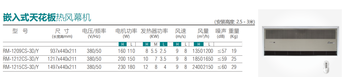 北京西奧多天花板風幕機RM-1209CS-3D/Y商場超市嵌入式電加熱空氣幕RM-1212CS-3D/Y機場風簾機/地鐵RM-1215CS-3D/Y北京總代理天津總經銷,河北總運營。3G系列熱風幕機3G熱風幕系列 型 號 H M L RM-1209S-3D/Y3G  RM-1212S-3D/Y3G  RM-1215S-3D/Y3G  RM-1218S-3D/Y3G RM-1209S-D/Y3G  RM-1212S-D/Y3G  RM-1215S-D/Y3G