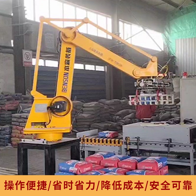 膩子粉本森關(guān)節(jié)120碼垛機器人是本森智能裝備(山東)有限公司推出的一款專為建材、化工等行業(yè)的袋裝產(chǎn)品自動化碼垛設(shè)計的工業(yè)機器人,其核心特點與優(yōu)勢可從技術(shù)參數(shù)、功能適配性及行業(yè)應(yīng)用價值三方面分析: