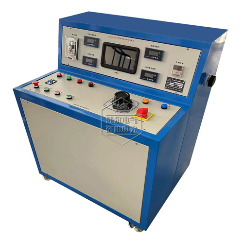 7、在控制面板上設(shè)有電源開關(guān)、高壓啟動、高壓停止、升壓、降壓等開關(guān)或按鈕(升壓、降壓僅限電動調(diào)壓方式型),有耐壓測試數(shù)字時間定時繼電器等;
