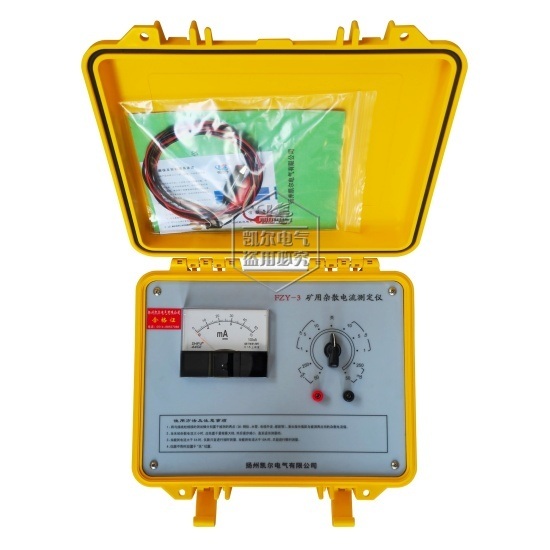 FZY-3型礦用雜散電流測定儀是一種靈敏度高,多量程保護電路的便攜式整流儀表。其特點:測量范圍廣,共有十個量程,能分別測量交直流雜散電壓和雜散電流,本身不需要電源,安全可靠。本測定儀適宜測試煤礦井下鋼軌、水管、電纜等產生的電流及電壓,預防雜散電流放電引起的電雷guan早爆及其它燃爆事故,使礦內火源等級降至安全限度。
