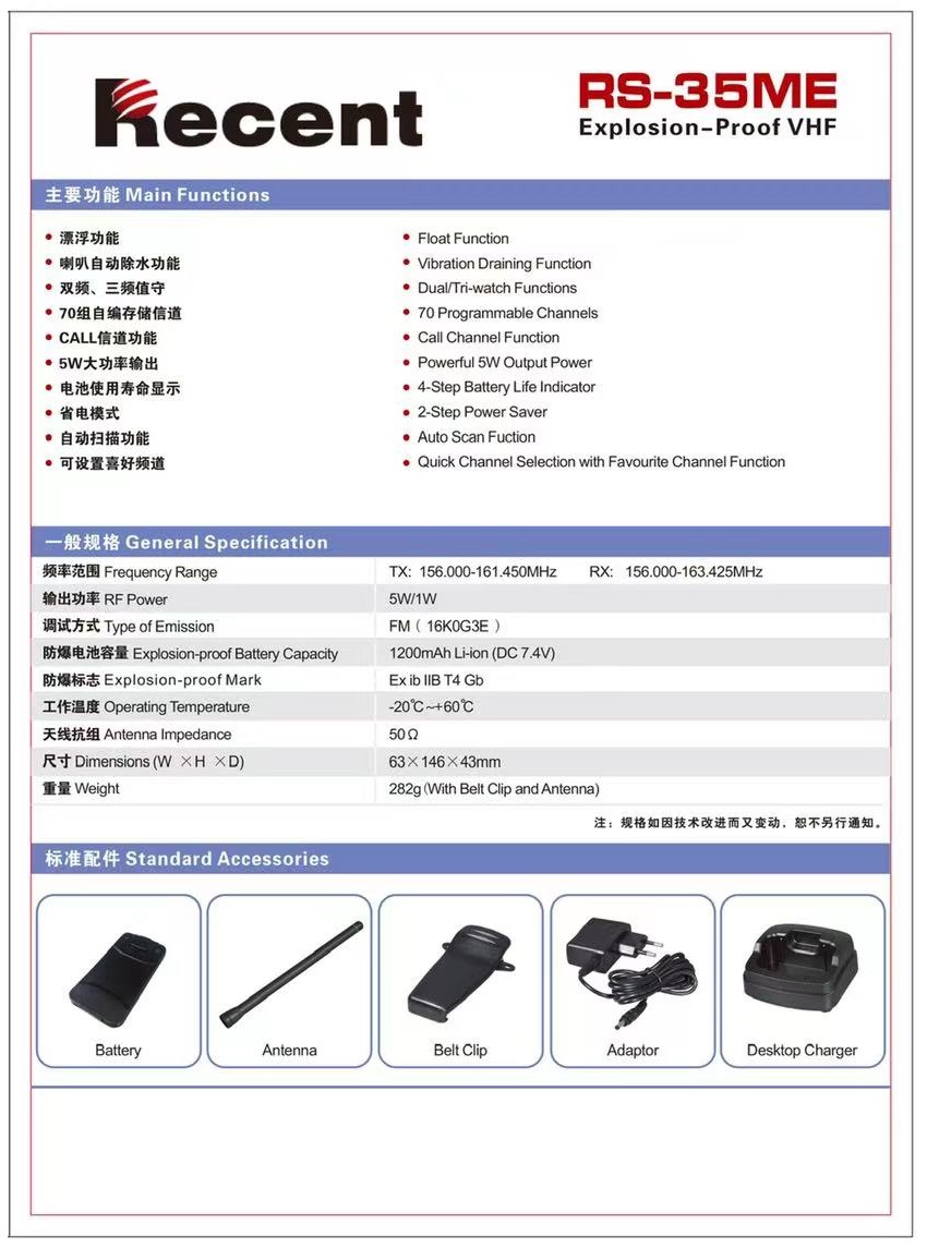 Recent瑞森RS-35ME船用手持機 防爆船用對講機鋰電池充電器