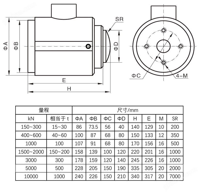 額定載荷: 150,200,300,400,500,600,1000,1500,2000,3000,5000,10000(kN)