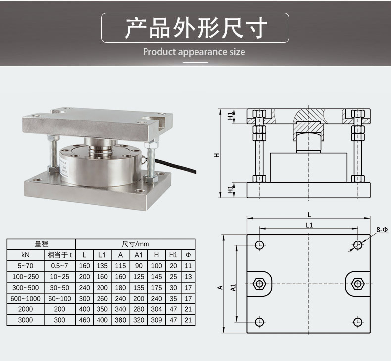 額定載荷: 5,10,20,25,30,50,70,100,200,250,300,500,600,1000,2000,3000(kN)