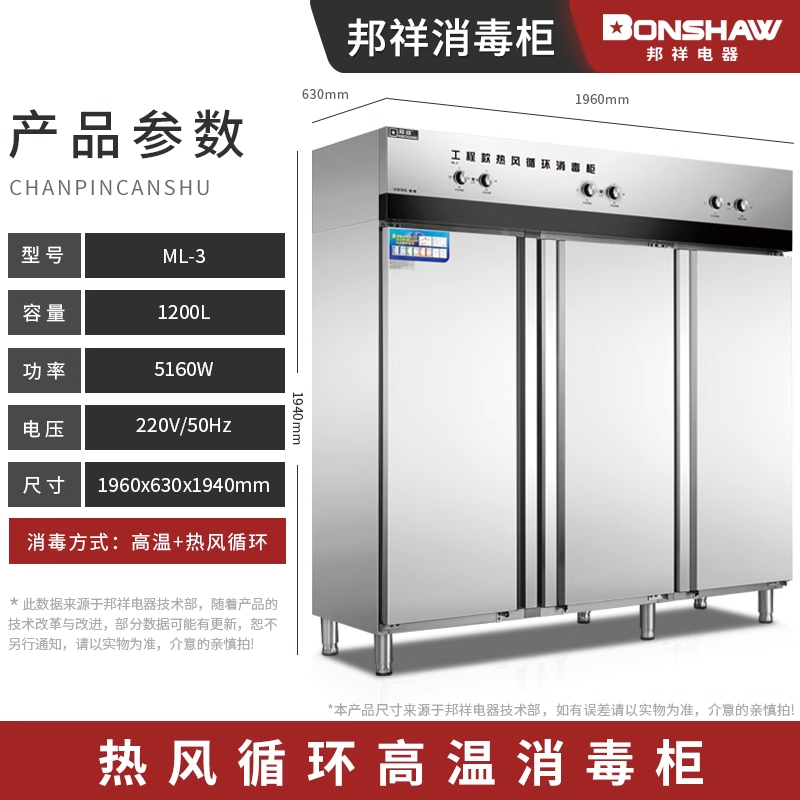• 邦祥ML-3工程款帶熱風(fēng)循環(huán)無磁不銹鋼三門消毒柜