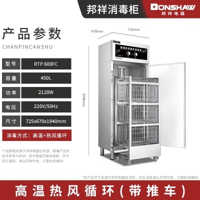 邦祥600FC推車款帶熱風(fēng)循環(huán)無磁不銹鋼消毒柜