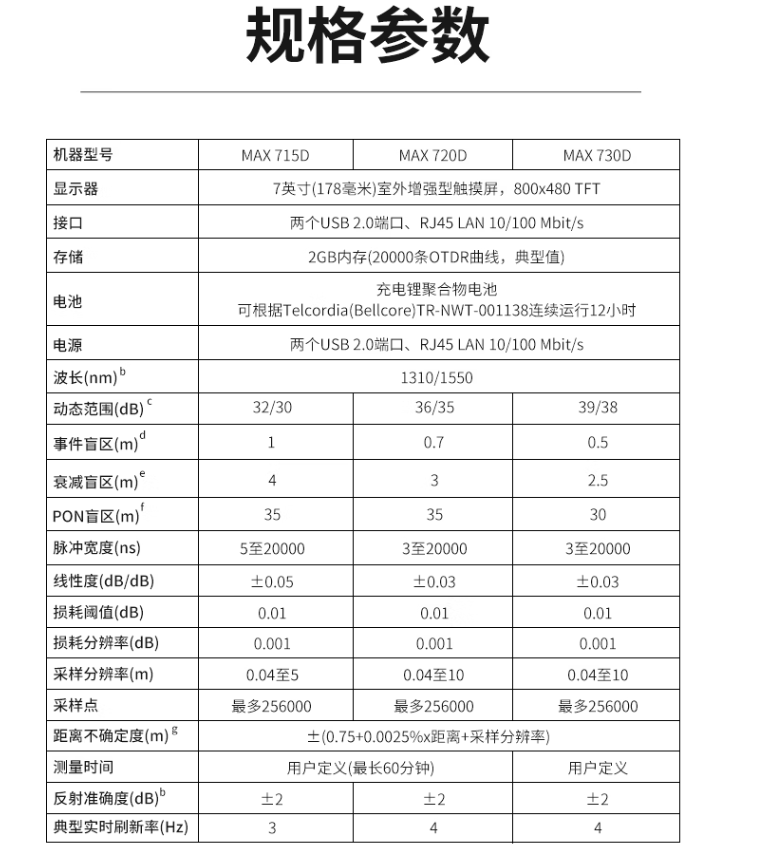 MaxTester 715D 光時域反射儀OTDR 技術參數: