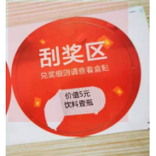 • 瓶蓋刮刮獎不干膠貼紙涂層揭開口獎卡加工