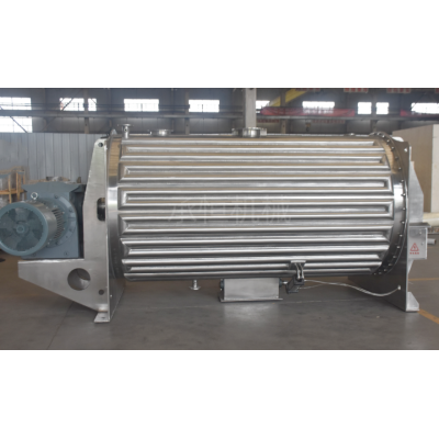 心旋轉,軸向由內至兩側推動,外螺旋帶動靠近筒壁物料做軸心旋轉,軸向由兩側至內推動,于是造成物料在筒體內對流循環、剪切滲混,完成物料在較短時間內快速均勻混合。