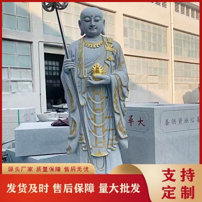 福建花崗巖石雕地藏菩薩 青石三面地藏王菩薩帶背光 戶外大型石雕