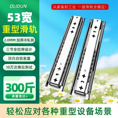 重型滑軌53寬工業導軌機貨柜加長工業風房車自鎖滑道阻尼抽屜軌道