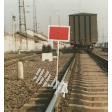 移動式脫軌器是一種軌道上的保護裝置,用于保護軌道上的人員或者重要的機車車輛,一旦有機車或車輛進入軌道即行脫軌以保證被保護對象的安全。比如貨列在到達場里進行列檢時兩端就有脫軌器,萬一在列檢人員工作時有機車進入同一軌道,就會把機車脫軌掉,盡管機車代價會比較大,但是和列檢人員的生命相比,還是將保護人的生命作為首要的,另外一些重要機車車輛兩端也設置脫軌器,以保護這些重要機車車輛的安全。