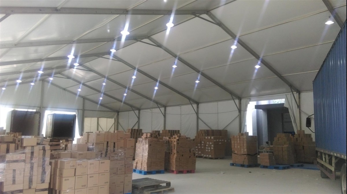 臨時(shí)倉庫篷房安全穩(wěn)固,莊重廷雅,整體臨時(shí)倉庫篷房抗風(fēng)能力為100公里/小時(shí),臨時(shí)倉庫篷房的PVC篷布,可防火、防雨,所以臨時(shí)倉庫篷房被廣泛應(yīng)用于臨時(shí)建筑。可以為客戶提供更為彈性的服務(wù),滿足其中短期內(nèi)對倉儲(chǔ)空間的需求。