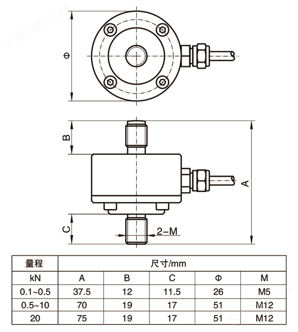 額定載荷 0.1,0.2,0.3,0.5,1,2,5,10,20(kN)