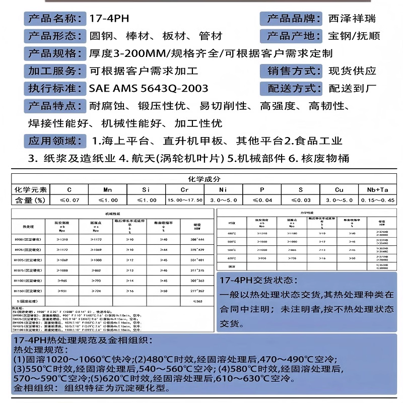 更新信息 快采購網供應商東莞市長安冶韓金屬材料行供應17-4PH SUS630 UNS S17400 ASTM 630不銹鋼圓棒圓鋼鋼板,為您提供詳細的產品報價、參數、圖片等商品信息,本產品于2025-11-10 08:53更新,主要更新內容為:產品類別、產品參數、產品價格、產品圖片等信息。如需進一步了解17-4PH SUS630 UNS S17400 ASTM 630不銹鋼圓棒圓鋼鋼板詳細信息,請與廠家直接聯系,并說明是在快采購網看到這條商機的。