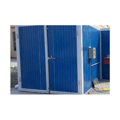 整個噴漆房為拼裝式結構,房體采用插式保溫夾心彩鋼板,密封、保溫性能好,房體裝有工作門,方便工作人員進出;鋁合金包邊大門,門裝有觀察窗,可觀察房內動態,選用低噪音,高風量風機,確保噴漆效果的性,噴漆時外部空氣經過粗效、中效過濾后由風機送到氣壓分流層,再經過頂部過濾凈化后,進入噴房內。房內空氣采用全降式,以0.2-0.3m/s的速度向下流動,使噴漆后的噴霧微粒不能在空氣中停留,而直接通過底部出風口被排出房外,加上噴房內具有一定的空氣壓力,外部灰塵無法進入噴房內,這樣不斷地循環轉換,且送入的空氣具有一定的壓力,可在工件四周形成一恒定的氣流以去除過量的油漆,從而較大限度的保證噴漆的質量。