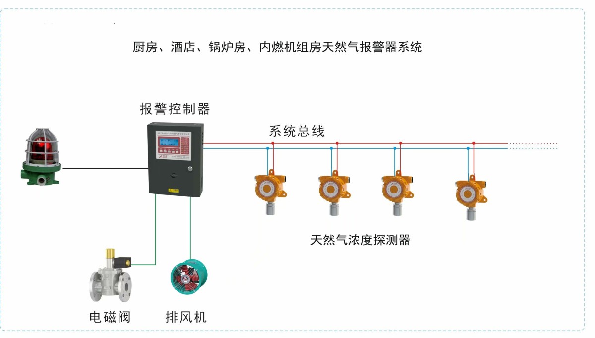 自帶聲光報警器輸出接口和一路無源輸出,聲光報警的同時又可配接排風機等設備。