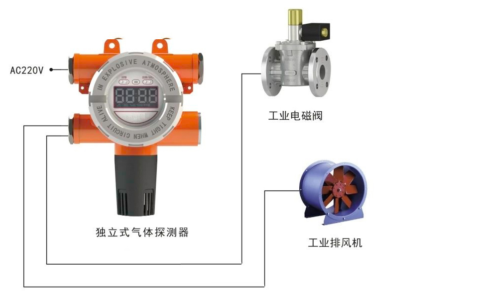 獨(dú)立式商業(yè)天然氣報警器采用進(jìn)口傳感器技術(shù),防腐防爆設(shè)計(jì),工作電壓為220V,產(chǎn)品自帶現(xiàn)場濃度顯示和聲光報警燈,設(shè)備含兩路報警輸出1路為脈沖信號輸出,1路為無源開關(guān)量信號輸出,獨(dú)立式天然氣報警器無需氣體報警器控制主機(jī),產(chǎn)品直接控制電磁閥和排風(fēng)機(jī),產(chǎn)品主要應(yīng)用于理發(fā)店,旅館,餐飲店,酒店鍋爐房,單位食堂等場所