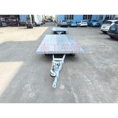 6噸牽引式船舶艏段轉運工具平板拖車南工車輛長期非標訂制,主要用于機場 、碼頭、工廠、港口等場區內運輸,本款拖車用于廠區里內船艇游艇運輸。