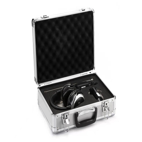 操作者手持圓柱頭部,手指靠壓控制開關(guān),頭帶耳機,即可測聽。探測桿接觸被測點,如管壁,閥門等。亦可插入草坪、松軟地面、小孔間隙處,以深入被測點。