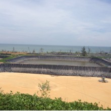海南文昌翁田高位池海水養蝦黑膜0.35mm0.50mm厚hdpe土工膜