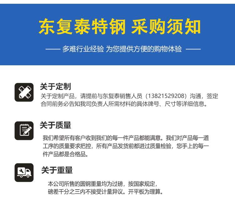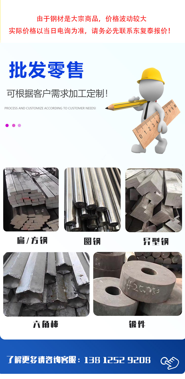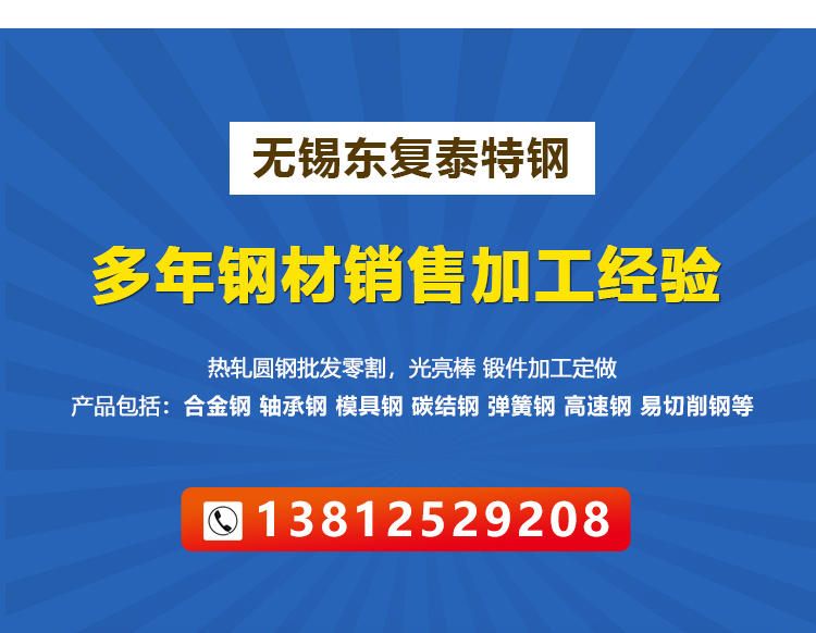 公司簡介   無錫東復泰特鋼有限公司地處華東地區很大的鋼鐵貿易集散地 — 無錫,是一家大型鋼材加工、銷售和配送的企業, 主要以CrMo(鉻鉬系列)、CrNiMo(鉻鎳鉬系列)、CrMnMo(鉻錳鉬系列)、碳素鋼( A105、10#、20#、25#、35#、Q345B)軸承鋼(GCr15,GCR15SiMn);易切削鋼(1215,12L14,1144);彈簧鋼(65Mn,60Si2MnA,50CrVA)螺栓鋼 (25Cr2MoV、25Cr2Mo1V、B16、20Cr1MO1VTiB 、20Cr1Mo1VNbTiB、2Cr12NiMO1W1V 、38CrSi)耐熱鋼(15CrMo ,12Cr1MoV, 1Cr6Si2Mo) (熱作模具鋼,冷作模具鋼,塑料模具等等)銷售東北特鋼、大冶特鋼、興澄特鋼、撫順特鋼、西寧特鋼、巨能特鋼、淮鋼、...