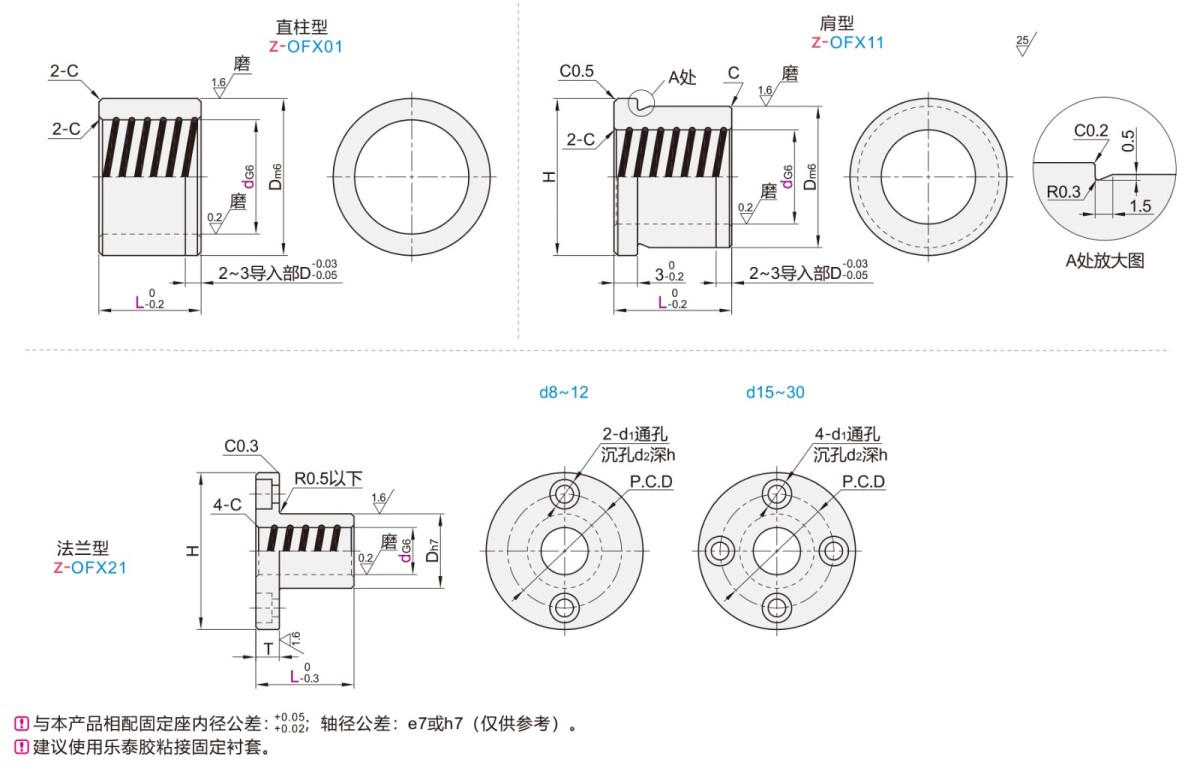 • 高精度型無油襯套 內置氟樹脂層自潤滑襯套
