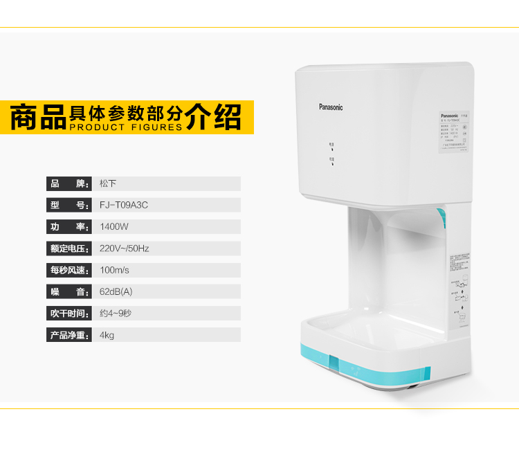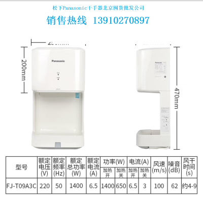松下干手器FJ-T09A3C北京總代理高速干手機衛(wèi)生間快速烘手器廚房食品廠干手器
