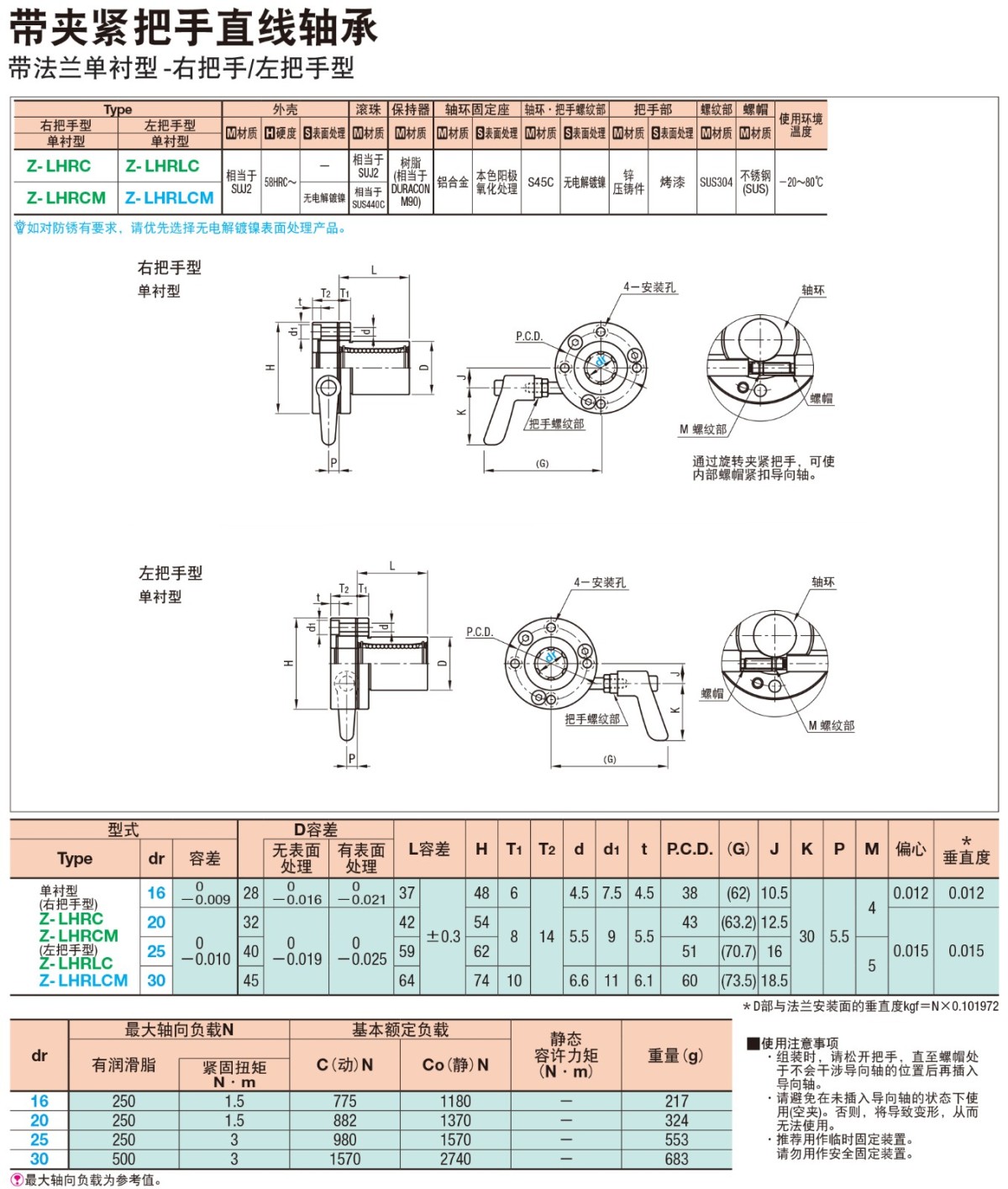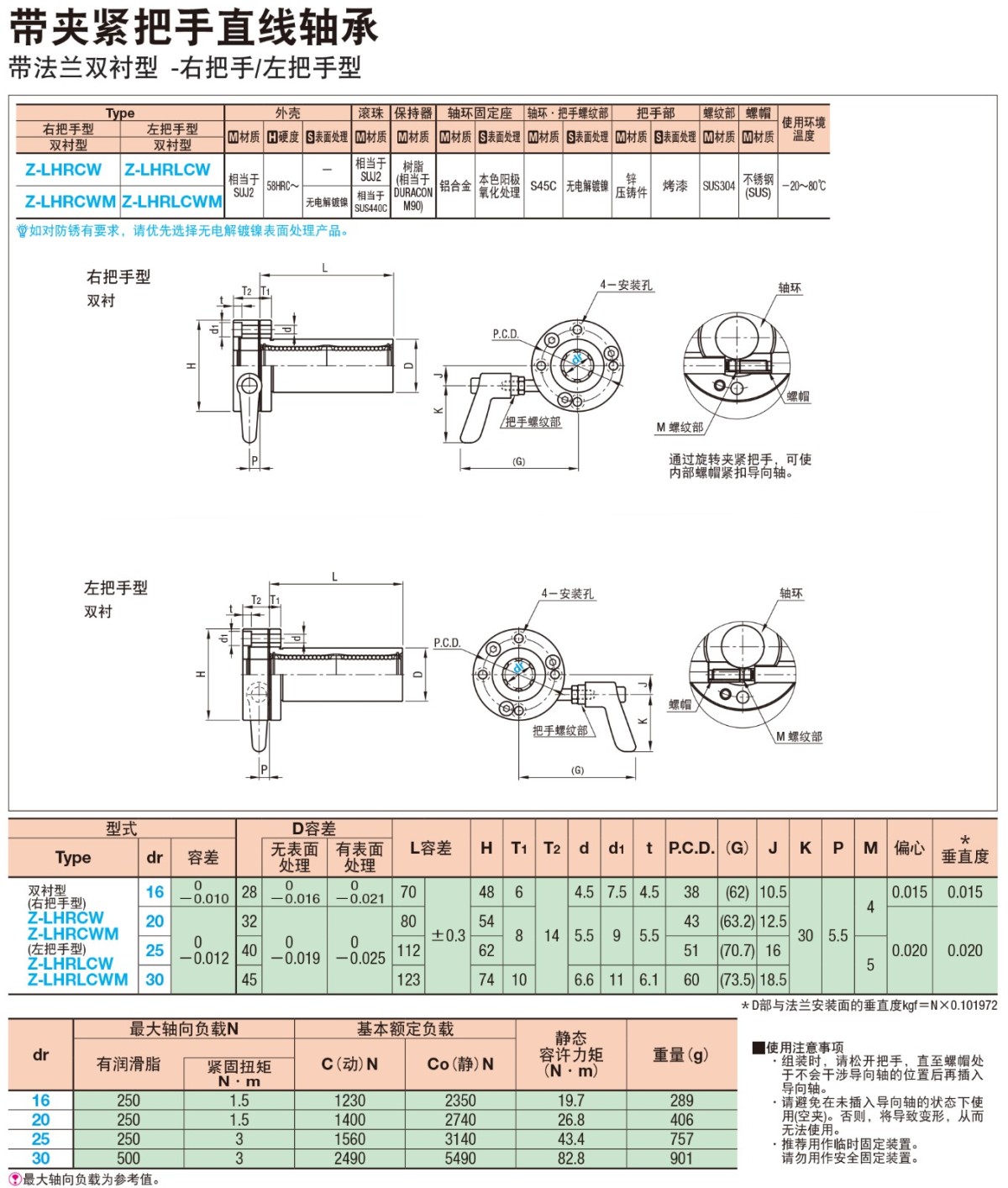 • 帶夾緊把手直線軸承 帶法蘭把手型直線軸承