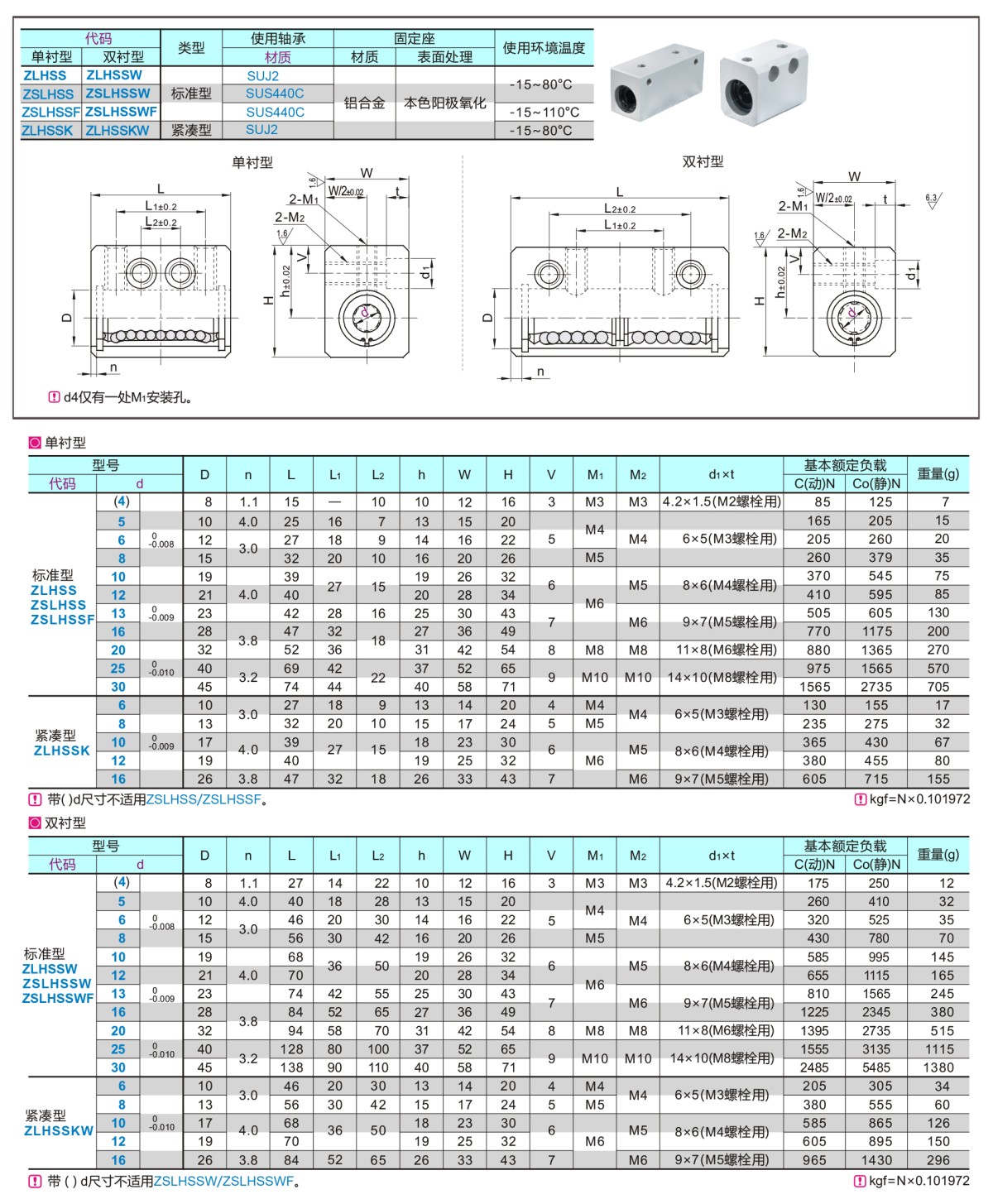 直線軸承固定座組件 標準型緊湊型 加高方型 單襯型直線軸承箱式單元