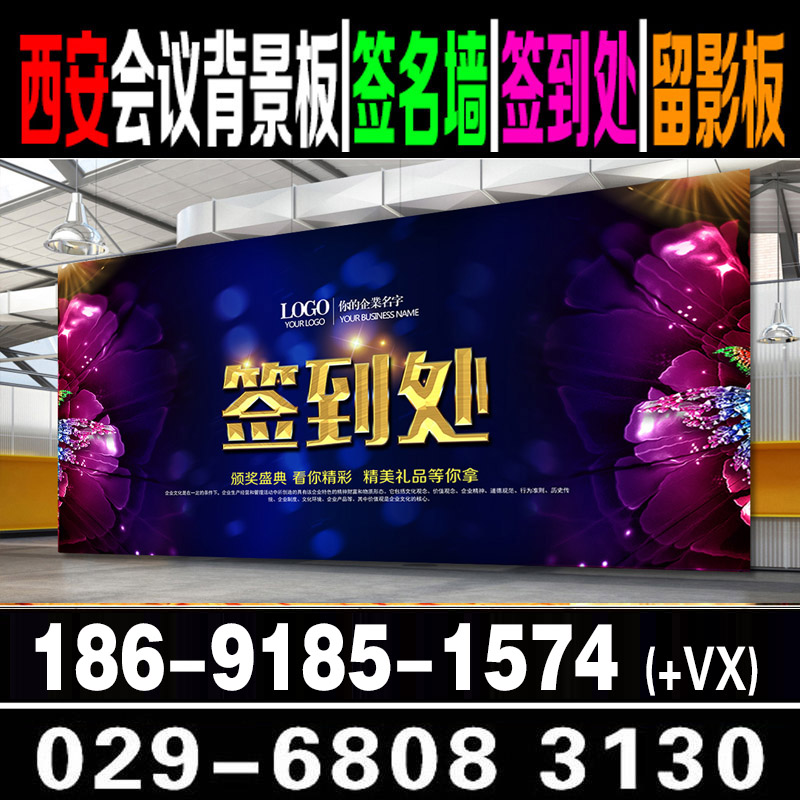 西安酒店會議背景板/噴繪桁架/舞臺地毯/簽到板/水座旗/展板展架印刷廣告制作公司.西安仟璽廣告.137-2076-7252