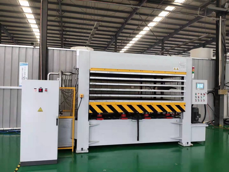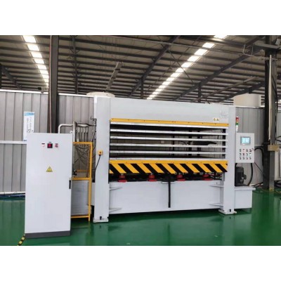 青島國森制造的裝飾材料板貼面熱壓機壓力一般在120--3600t,層數1-5層。采用新型自動控制液壓站。 由于熱壓機具有設計合理、節約能源,安全可靠等特點。 整條生產線電氣控制采用plc可編程序控制器,從而大大提高了生產線的可靠性,操作的靈活性。