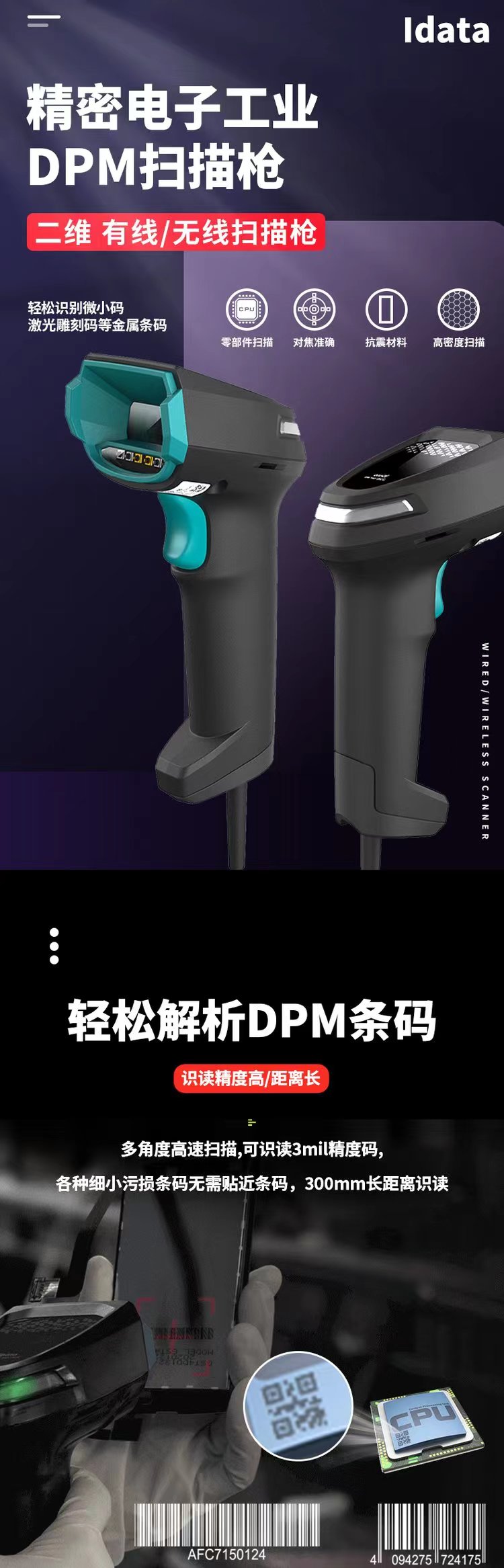 • iData J16 工業高精度掃描槍 DPM碼掃描器 有線掃描槍