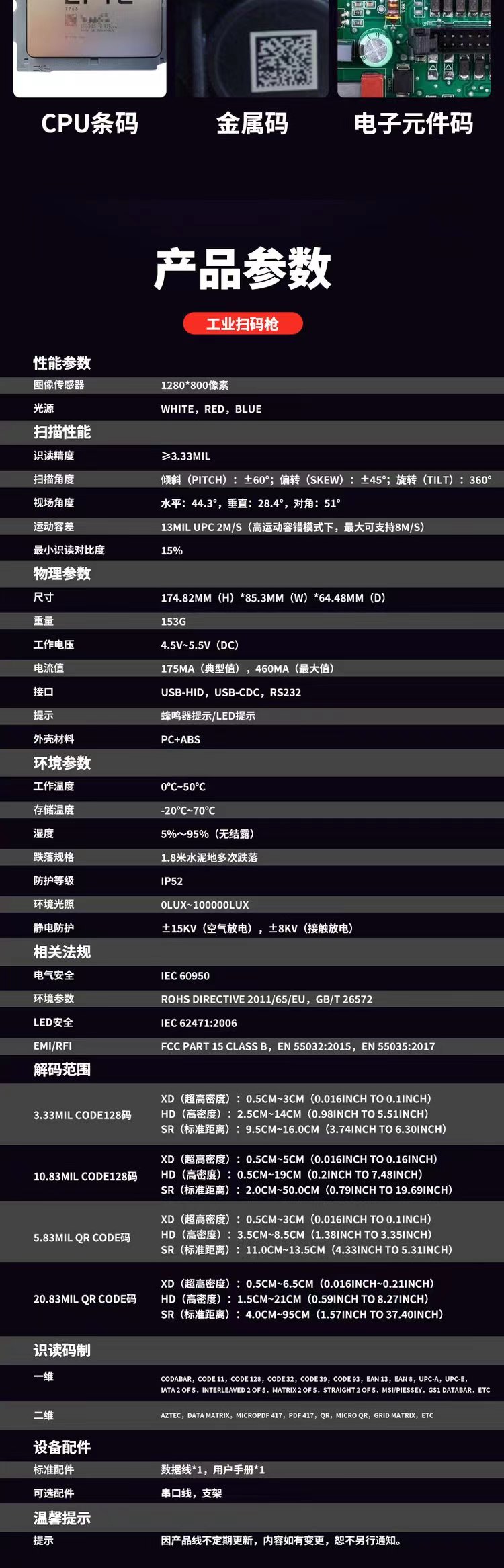 更新信息 快采購網供應商廣州宏山自動識別技術有限公司供應iData J16 工業高精度掃描槍 DPM碼掃描器 有線掃描槍,為您提供詳細的產品報價、參數、圖片等商品信息,本產品于2025-09-25 16:00更新,主要更新內容為:產品類別、產品參數、產品價格、產品圖片等信息。如需進一步了解iData J16 工業高精度掃描槍 DPM碼掃描器 有線掃描槍詳細信息,請與廠家直接聯系,并說明是在快采購網看到這條商機的。