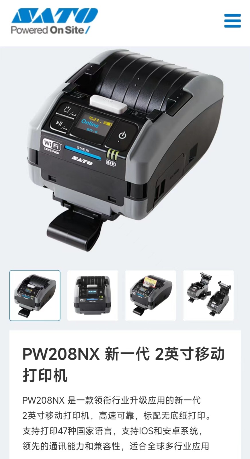 SATO 佐藤 PW208NX 2英寸便攜式標簽打印機藍牙打印機熱敏打印機