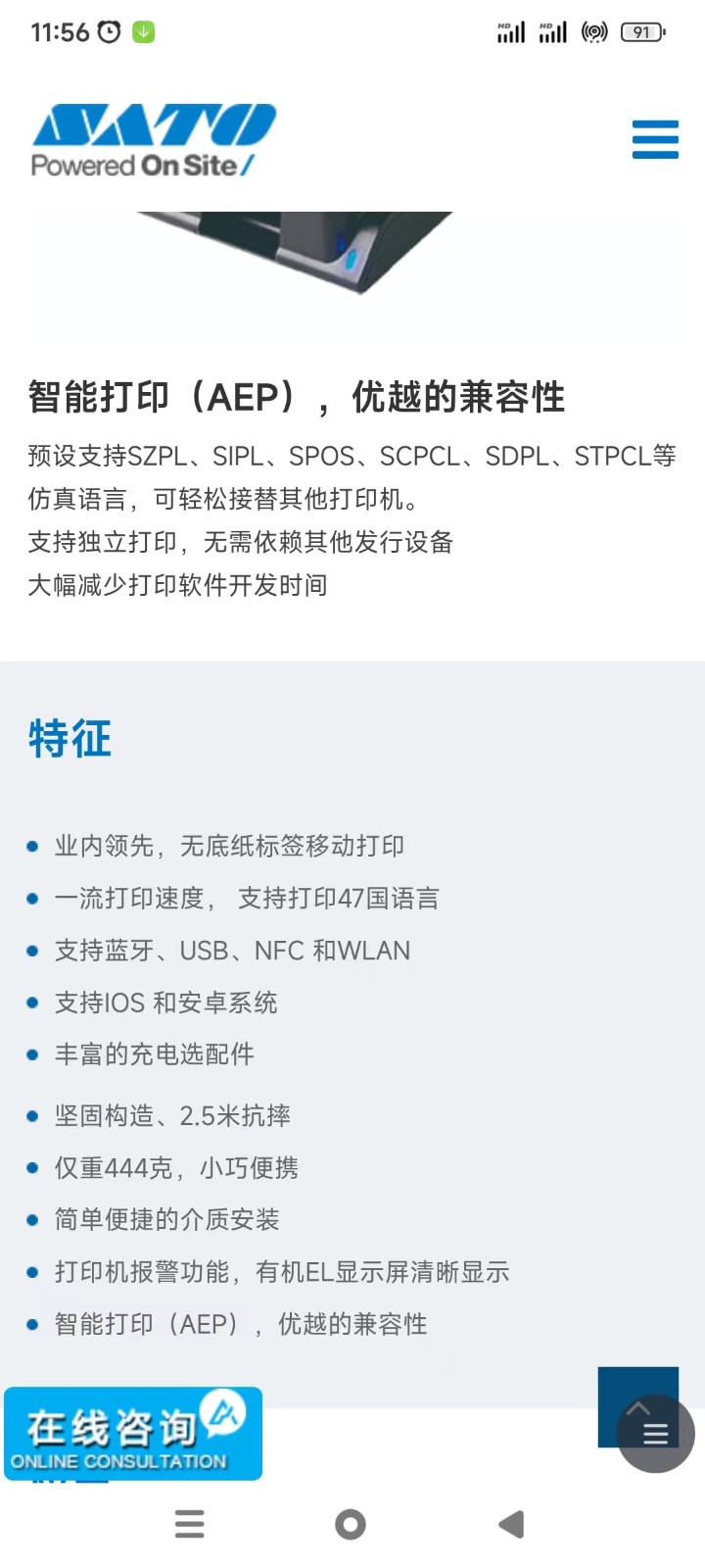 更新信息 快采購網供應商廣州宏山自動識別技術有限公司供應SATO 佐藤 PW208NX 2英寸便攜式標簽打印機藍牙打印機熱敏打印機,為您提供詳細的產品報價、參數、圖片等商品信息,本產品于2025-09-28 14:47更新,主要更新內容為:產品類別、產品參數、產品價格、產品圖片等信息。如需進一步了解SATO 佐藤 PW208NX 2英寸便攜式標簽打印機藍牙打印機熱敏打印機詳細信息,請與廠家直接聯系,并說明是在快采購網看到這條商機的。