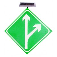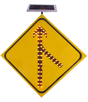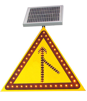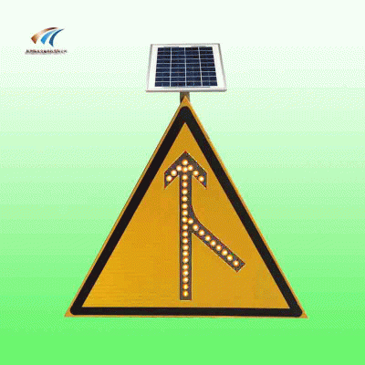 太陽能合流標志牌在無電源的高速公路互道前段,主動發光的交通標志顯現出了強大的提示作用,其可視距離是以反光膜作為反光材料的標志牌的數倍,其動態效果也是普通標志牌所不可替代的警示效果。特別在現代的高速路、城市道路中,夜晚駕駛者很難迅速認清被淹沒在霓虹燈光、廣告燈箱中的傳統交通標志,此時發光標志的主動發光性能顯得尤為重要。