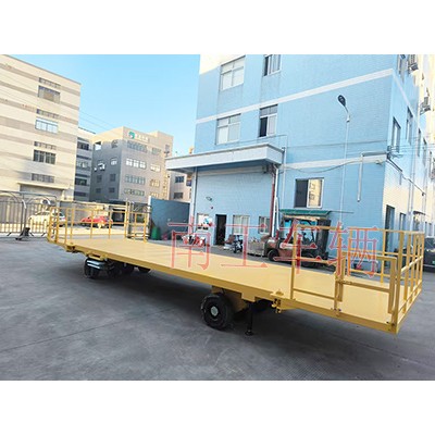 10噸移動拖車底盤 全掛式平板拖車帶護欄南工車輛長期非標(biāo)訂制,平板拖車用于工廠、碼頭、港口、機場、倉庫等場區(qū)短途周轉(zhuǎn)運輸,本款拖車帶角鎖,適用于各類箱體簡易房車移動方艙運輸。