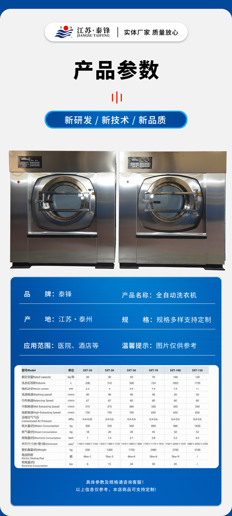 更新信息 快采購網(wǎng)供應(yīng)商泰鋒機械制造有限公司供應(yīng)泰鋒牌洗衣房設(shè)備 水洗機 烘干機 洗脫機 燙平機 折疊機一站式服務(wù),為您提供詳細的產(chǎn)品報價、參數(shù)、圖片等商品信息,本產(chǎn)品于2025-10-13 14:25更新,主要更新內(nèi)容為:產(chǎn)品類別、產(chǎn)品參數(shù)、產(chǎn)品價格、產(chǎn)品圖片等信息。如需進一步了解泰鋒牌洗衣房設(shè)備 水洗機 烘干機 洗脫機 燙平機 折疊機一站式服務(wù)詳細信息,請與廠家直接聯(lián)系,并說明是在快采購網(wǎng)看到這條商機的。